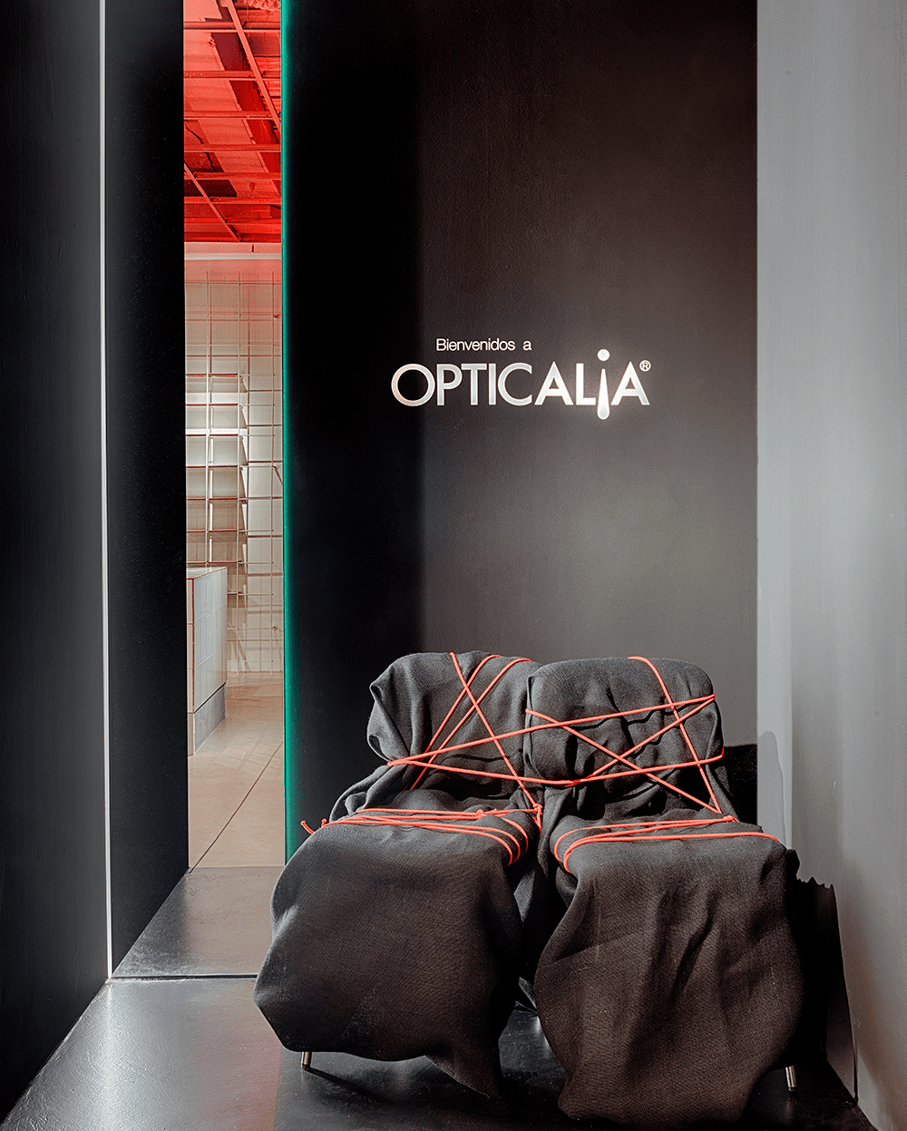 En los puestos de atención personalizada, la silla para el óptico es el modelo Flex con ruedas y giratoria, de Andreu World. Las sillas de confidente son el modelo Sail en negro, del mismo fabricante.