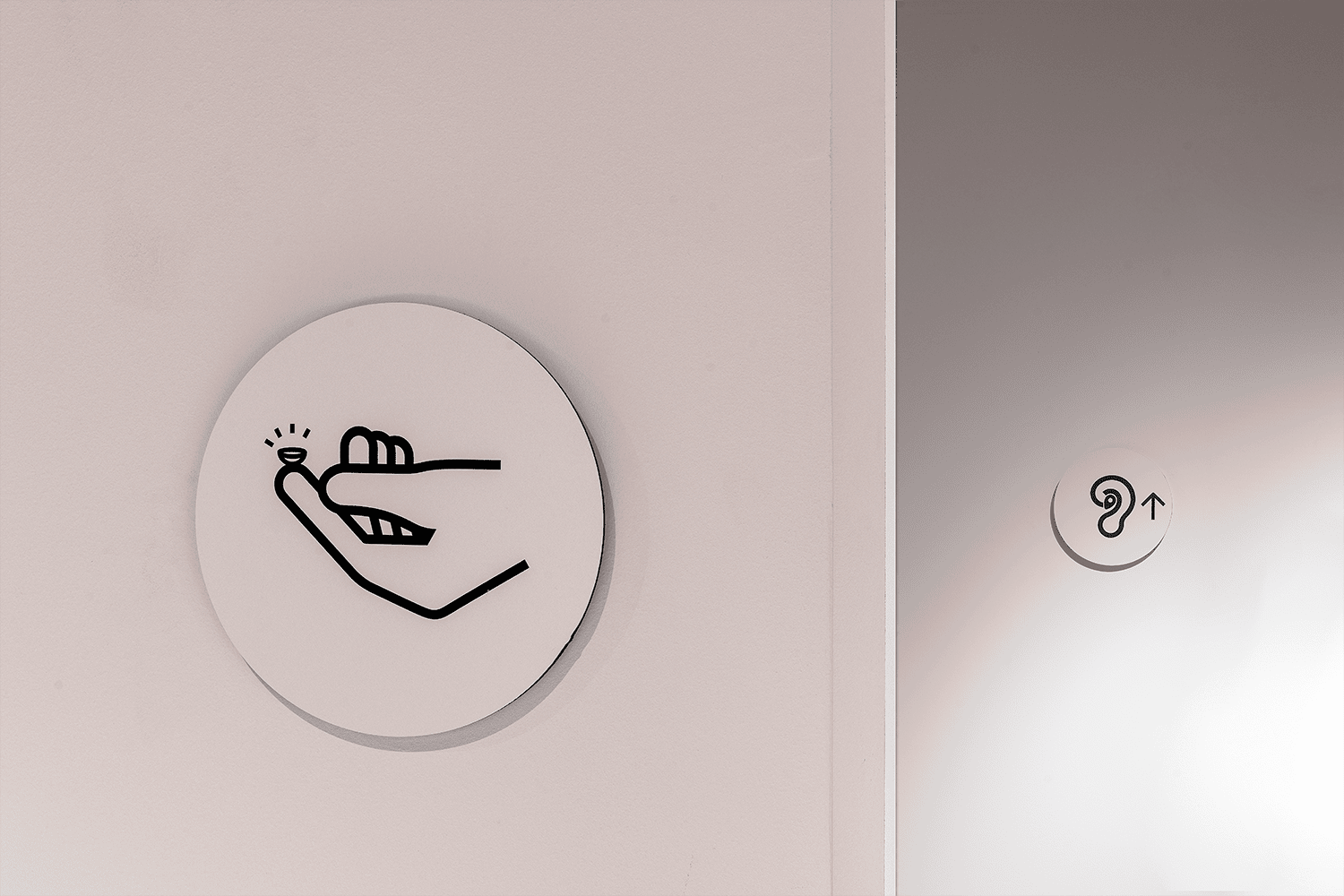 La parte del local destinada a centro auditivo tiene un acceso propio desde la calle, aunque interiormente está comunicada directamente con la óptica. Tiene tres zonas, una de recepción y espera, otra de atención personalizada y otra específica para las pruebas auditivas. Estéticamente sigue el mismo criterio que en todo el centro óptico.