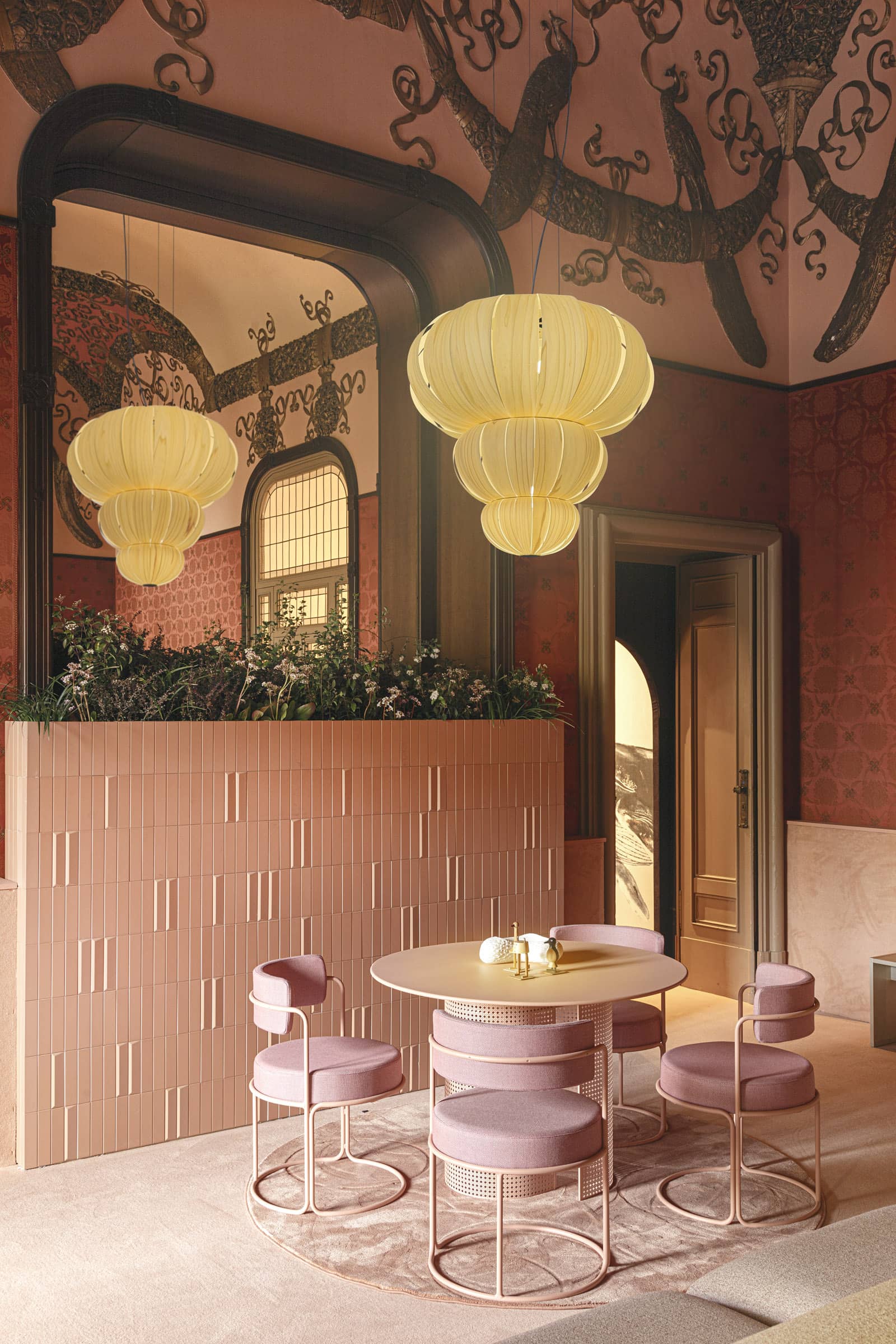 Metal reflec­tan­te, hormigón cola­do, vidrio, por­ce­la­na, tex­til y luz se com­bi­nan en una composición estra­ti­fi­ca­da que evo­lu­cio­na a lo lar­go del día. En este con­tex­to, el diseño deja de pre­sen­tar­se como obje­to ais­la­do para con­ver­tir­se en par­te de un eco­sis­te­ma sen­so­rial don­de mate­ria, percepción y tiem­po dia­lo­gan de for­ma cons­tan­te.